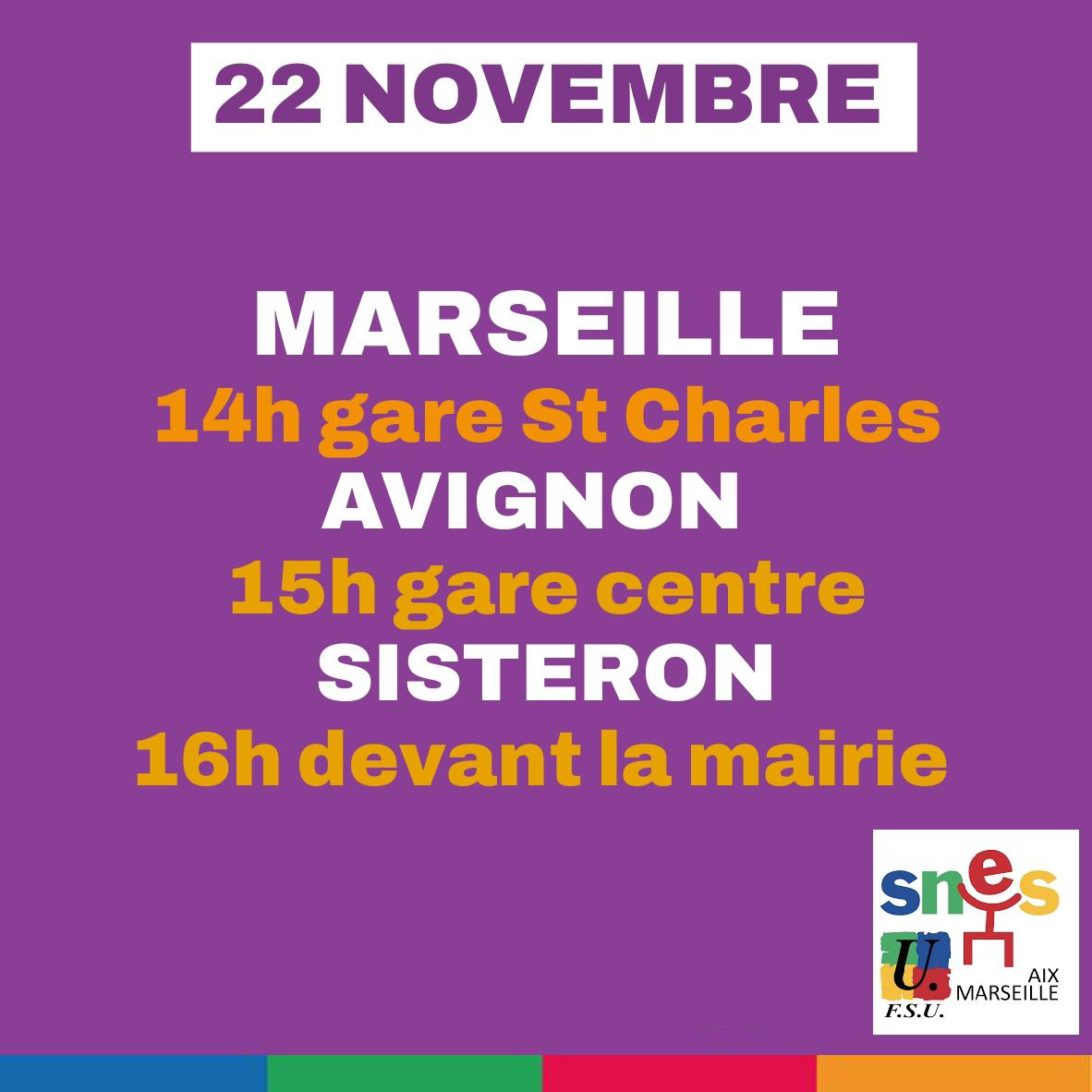 Le SNES-FSU Appelle à participer aux rassemblements et manifestations des 22, 25 et 29 novembre.
