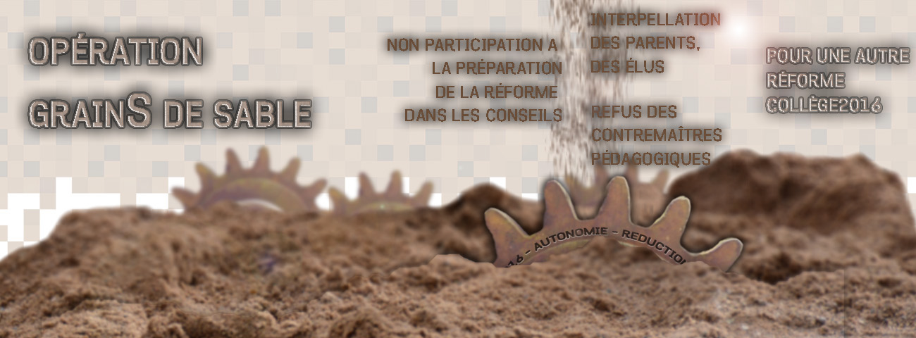 Le SNES-FSU Aix-Marseille a été ainsi à l’initiative de deux actions qui ont fortement marqué la lutte contre Collège2016 : la soirée des collèges (lire ici) du jeudi 4 juin 2015 (exemple ici), au cours de laquelle nous avons appelé les sections syndicales d’établissement à organiser des débats publics avec les parents (exemple ici), et l’opération Grains de Sable (voir le storify ici) qui a atteint son apogée le mercredi 25 novembre (exemple ici) lors de la première journée de travail sur la mise en œuvre de la réforme (lire ici). Cette stratégie a permis au mouvement de rebondir (voir ce qu’en disent les inspecteurs :lire ici), malgré un rythme trop rapide des journées nationales d’action à la rentrée 2015 (lire ici).