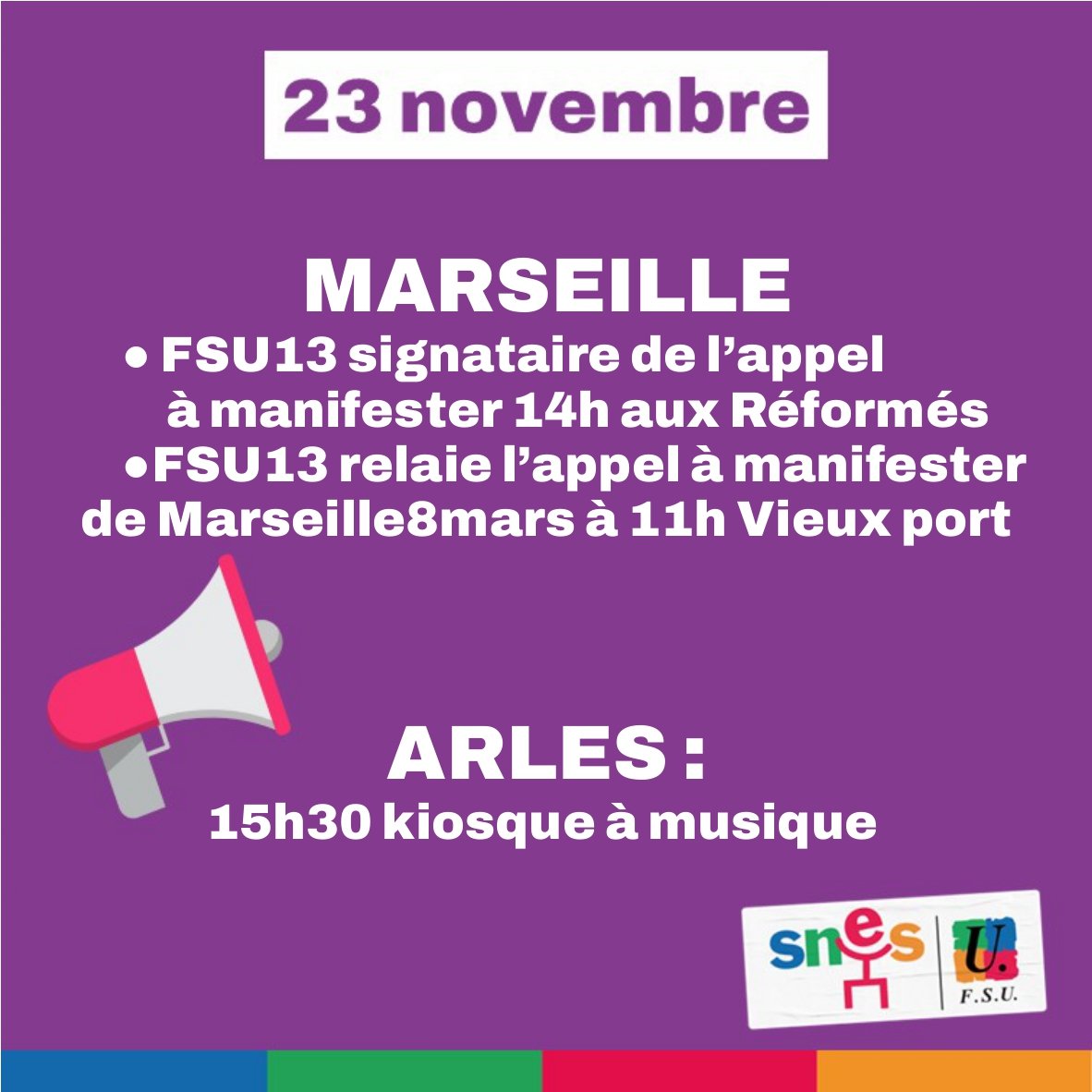 Le SNES FSU Aix Marseille est engagé dans ces luttes à tous les niveaux : en participant aux mobilisations en solidarité avec les femmes du monde entier qui se soulèvent pour leurs droits, en obtenant auprès du ministère un dispositif de recueil et d’écoute, qui nécessite encore des moyens pour être pleinement efficace, mais aussi en interne, où une cellule de veille est disponible pour les victimes.