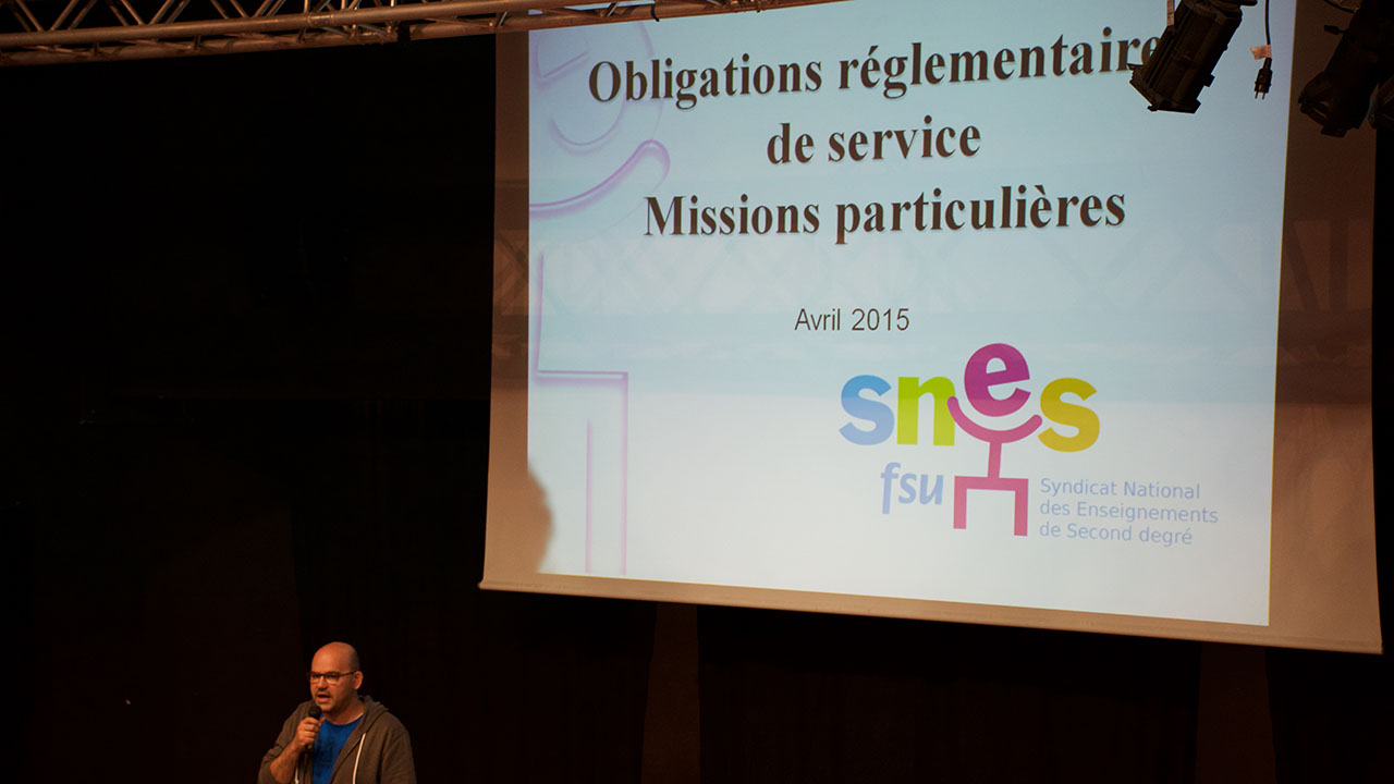Les différents temps ont permis de faire le lien entre la réforme du collège, le décret du 22 octobre 2014 sur les instances pédagogiques, la circulaire d’application du décret Peillon sur les services d’août 2014 et les indemnités IMP. Les situations des langues vivantes, des langues anciennes et régionales, de la technologie et des sciences, ont été présentées.