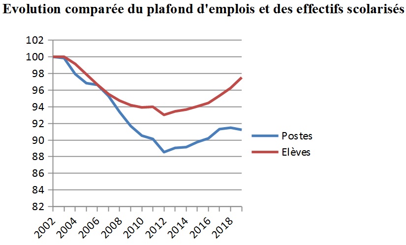 Les emplois ainsi supprimés sont des emplois qui sont cette année occupés par des personnes, qui travaillent actuellement auprès des élèves. Il y aura donc bien l’an prochain moins d’adultes pour assurer les enseignements auprès de nos jeunes : moins de professeurs titulaires, les départs en retraite n’étant pas remplacés, moins de personnels non-titulaires, certains ayant été remerciés en cours d’été, moins de jeunes professeurs stagiaires, les postes aux concours étant réduits.