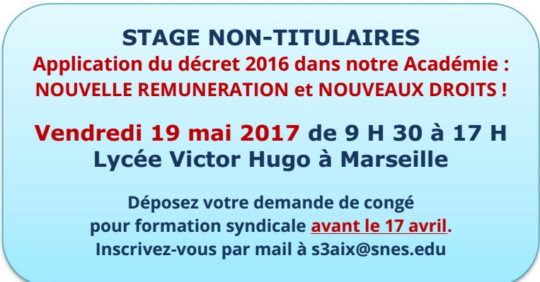 Dans notre Académie, l’application du décret d’août 2016 et des arrêtés relatifs aux conditions de recrutement, de rémunérations, de formation, d’évaluation et d’exercice des agents contractuels d’enseignement, d’éducation et d’orientation en formation initiale et MLDS aura donné lieu à un intense travail du SNES et de la FSU pour assurer le suivi et de la défense des nouveaux droits obtenus.